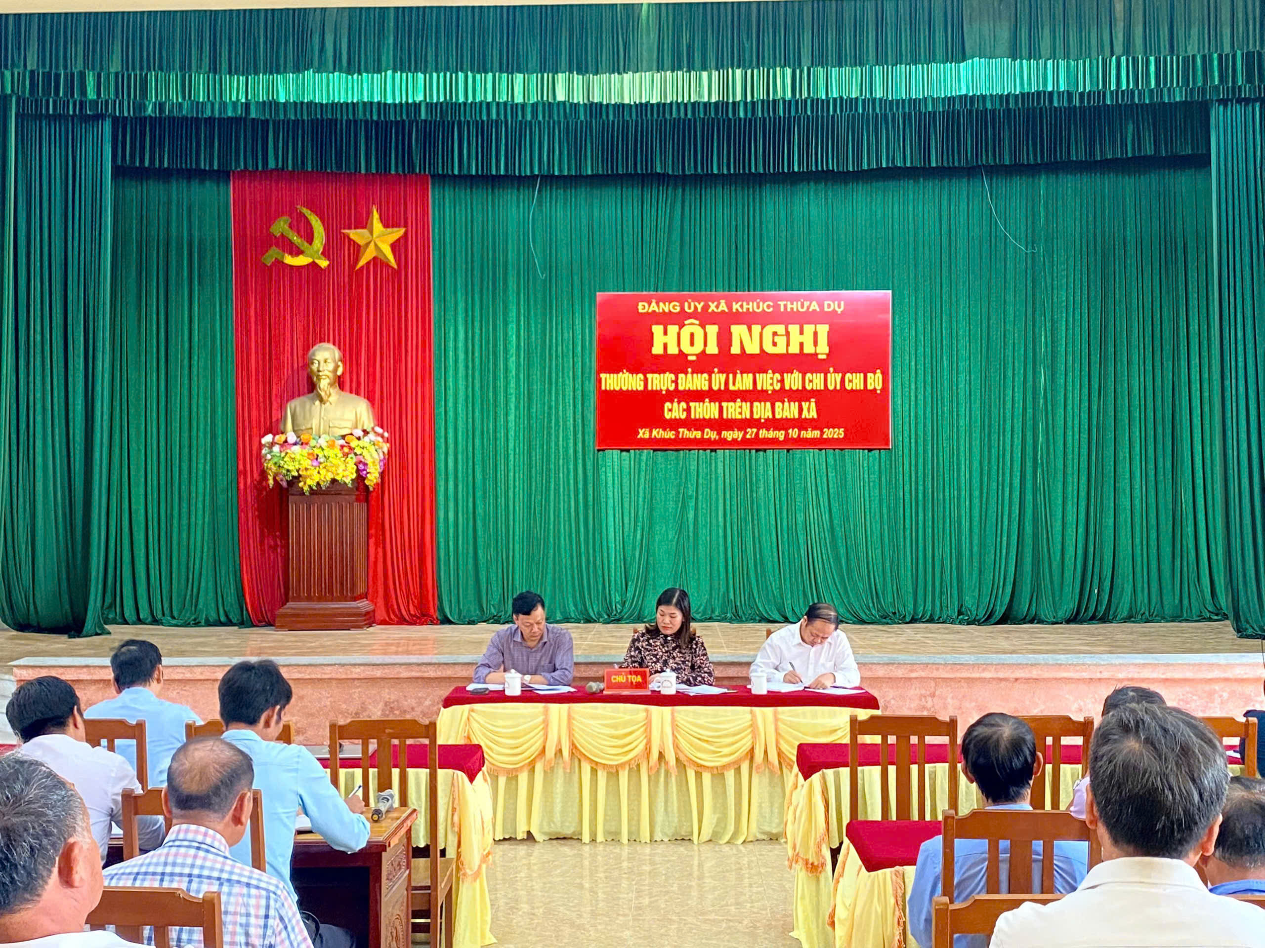 Chiều ngày 27 tháng 10, Thường trực Đảng uỷ xã Khúc Thừa Dụ đã tổ chức làm việc với Chi uỷ chi bộ các thôn trên địa bàn xã. Các đồng chí Trịnh Thị Thuỷ - Bí thư Đảng uỷ, Chủ tịch Hội đồng Nhân dân xã; Nguyễn Duy Dương – Phó Bí thư Thường trực Đảng uỷ; Nguyễn Tuấn Hải – Phó Bí thư Đảng uỷ, Chủ tịch Uỷ ban Nhân dân xã chủ trì hội nghị.